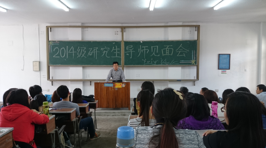 金色的秋天是采撷硕果的季节,更是升腾希望与理想的季节。2014年10月9日下午15时2014级研究生开学典礼暨师生见面会在学思楼四合教室隆重召开。会议由高齐圣副经理主持,2014级全体研究生和各专业指导教师、研究生工作秘书及辅导员共80余人参加。