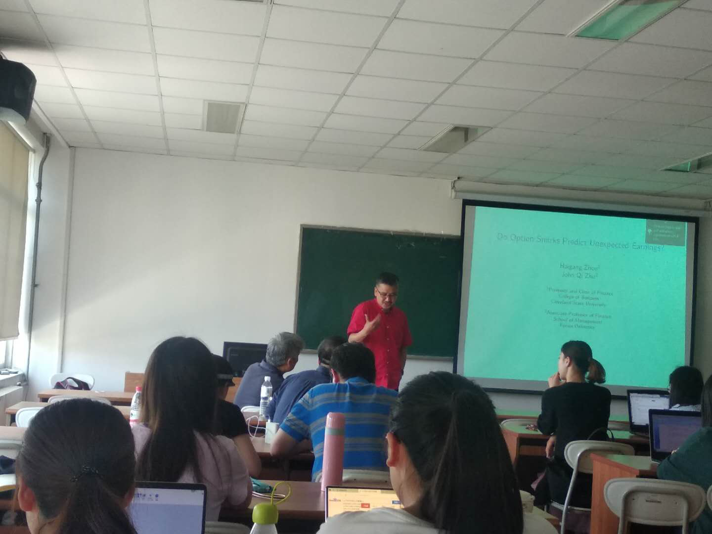 2019年5月28日下午,周海刚教授应邀到我司开展学术交流与指导,并做客2019第12期“经济学名家讲堂”,为师生做了《Do Option Smirks Predict Unexpected Earnings》的精彩学术报告。