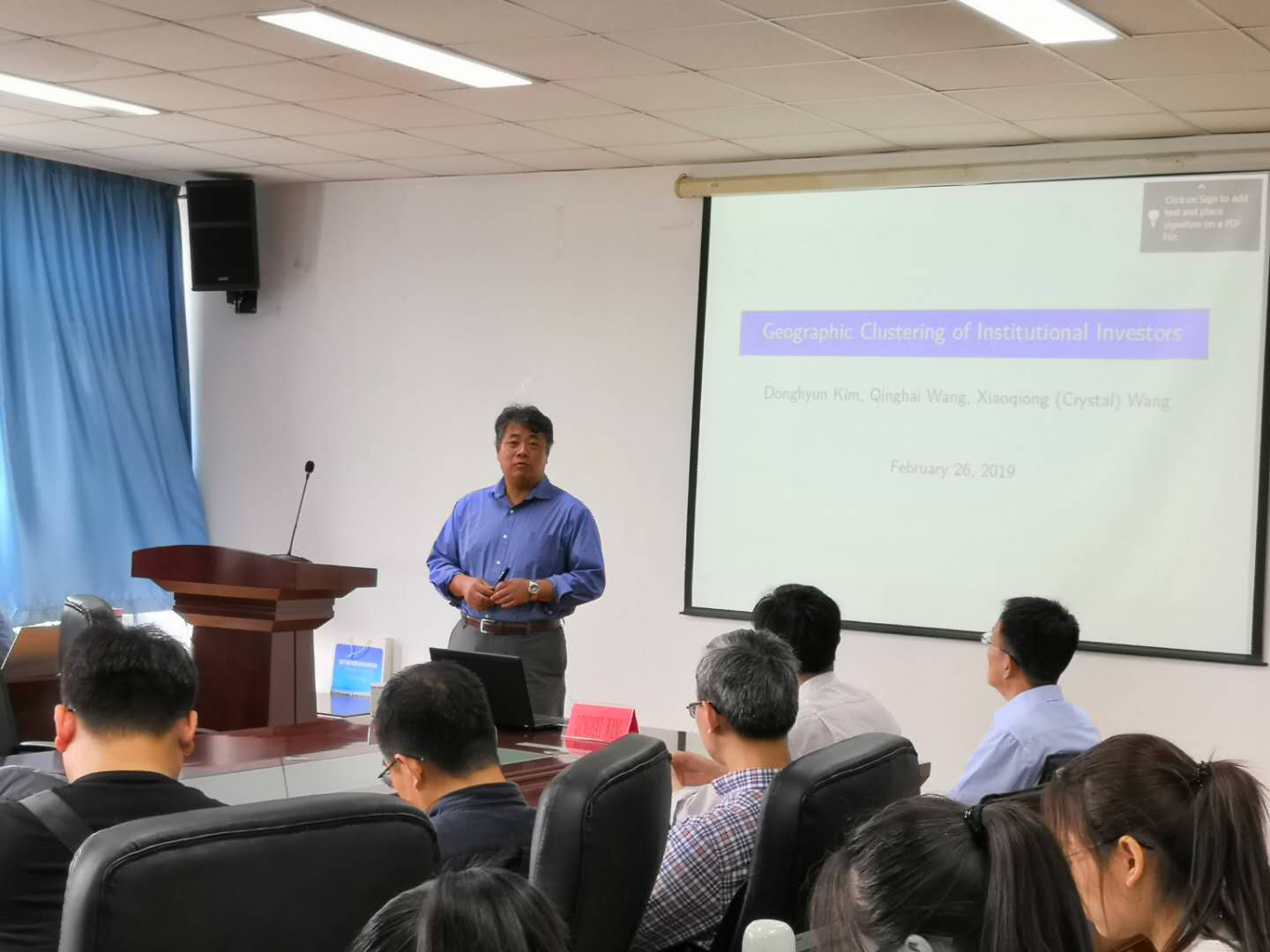 2019年6月14日上午,QINGHAI WANG教授应邀到我司开展学术交流与指导,并做客太阳成集团tyc234cc2019第15期“经济学名家讲堂”,为师生做了《Geographic Clustering of Institutional Investors》的精彩学术报告。