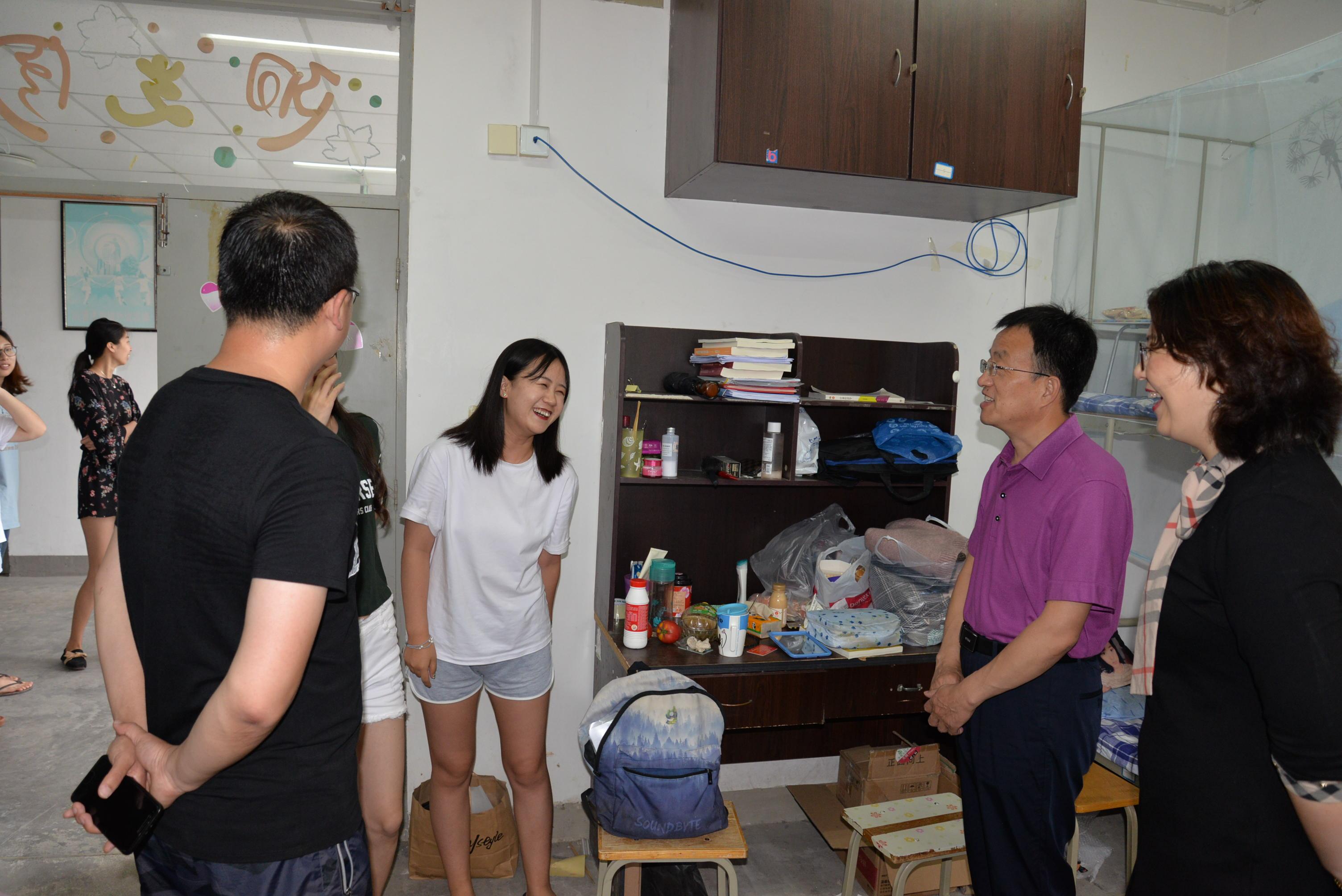 6月28日下午,芊芊细雨,瑟瑟清风,太阳成集团tyc234cc经理刘喜华、党委副书记王海荣和2015级辅导员李冉一同走访毕业生宿舍,与毕业生面对面接触,心贴心交流。老师们听取了他们对学院发展建设的意见和建议,询问他们对于未来的展望与规划,向他们表达了离别之际的不舍并给予了真挚的鼓励和祝福。走访临近结尾时,员工们坚持把老师们送到楼下,在门口与老师依依惜别,有些同学还为此流下了感动的眼泪。