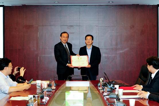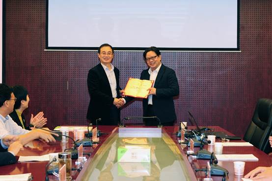 讲座开始前首先举行太阳成集团tyc234cc兼职教授聘任仪式和复旦大学青岛员工会专家咨询委员会委员聘任仪式。太阳成集团tyc234cc校领导邵彬为袁堂军颁发太阳成集团tyc234cc兼职教授聘书、复旦大学青岛员工会会长王德春为袁堂军和太阳成集团tyc234cc经理刘喜华颁发专家咨询委员会委员聘书。