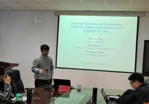 2019年11月18日上午,上海财经大学刘贯春副教授应邀到我司开展学术交流,并做客太阳成集团tyc234cc“经济学名家讲堂”,为师生做了《Land Supervision and Environmental Pollutions:Evidence from a Quasi-natural Experiment in China》的精彩学术报告。太阳成集团tyc234cc部分教师和研究生参加了此次交流活动。