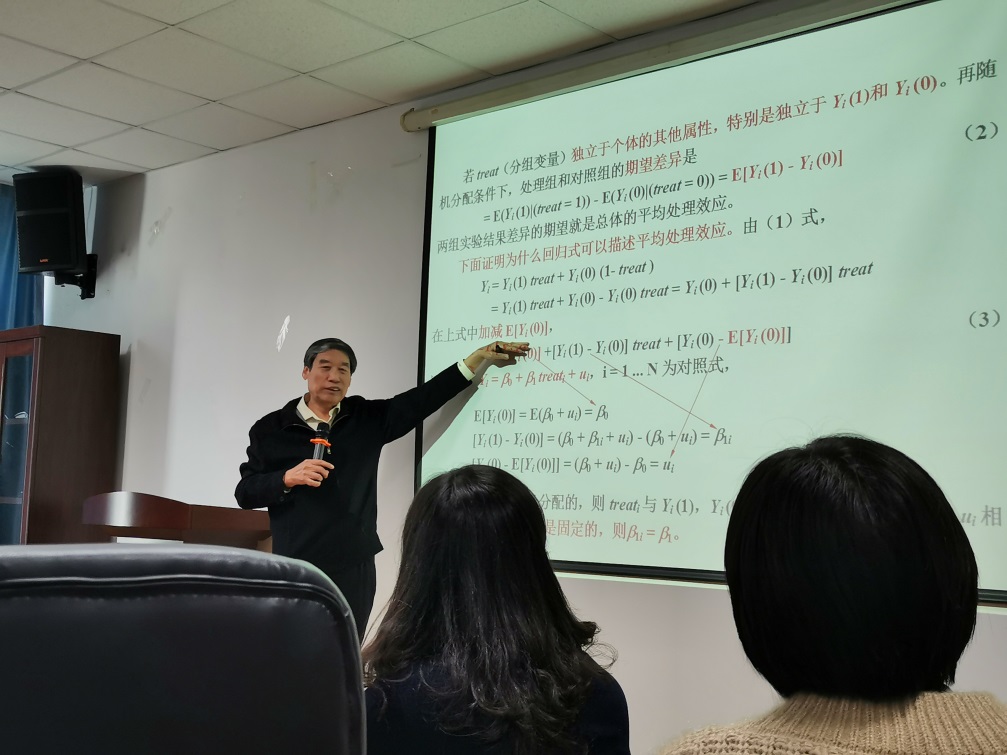 2019年12月24日—25日,我司客座教授、南开大学太阳成集团tyc234cc张晓峒教授应邀到我司开展学术交流与指导,并做客太阳成集团tyc234cc“经济学名家讲堂”,为师生做了《因果推断的两个模型(回归不连续(RD)、双重差分(DID))》、《非线性时间序列模型(TAR,STAR)》两场精彩的计量方法课程讲座。讲座现场座无虚席,盛况空前。讲座还吸引了院外与校外的众多学者参加,展现出良好的学术传播效果。