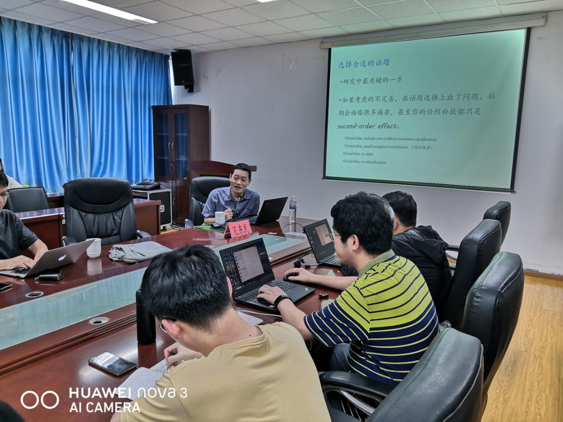 2020年9月10日上午,华中科技大学孔东民教授应邀到我司开展学术交流与指导,并做客太阳成集团tyc234cc“经济学名家讲堂”,为师生做了《科研论文选题、写作与投稿》的精彩报告。太阳成集团tyc234cc部分教师和20级研究生参加了此次交流活动。