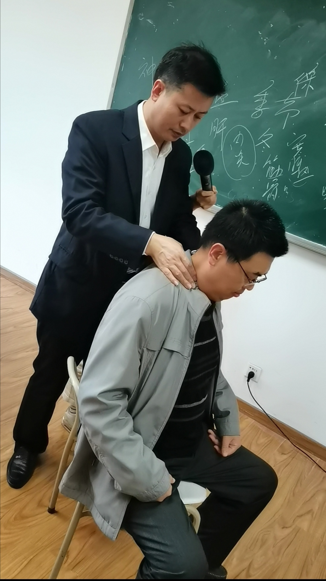 现场教职工们认真聆听,互动热烈,对于大家的提问,古伟逐一给予耐心解答,并现场示范颈椎病的推拿按摩手法。讲座既通俗易懂,又具有较强的实用性。