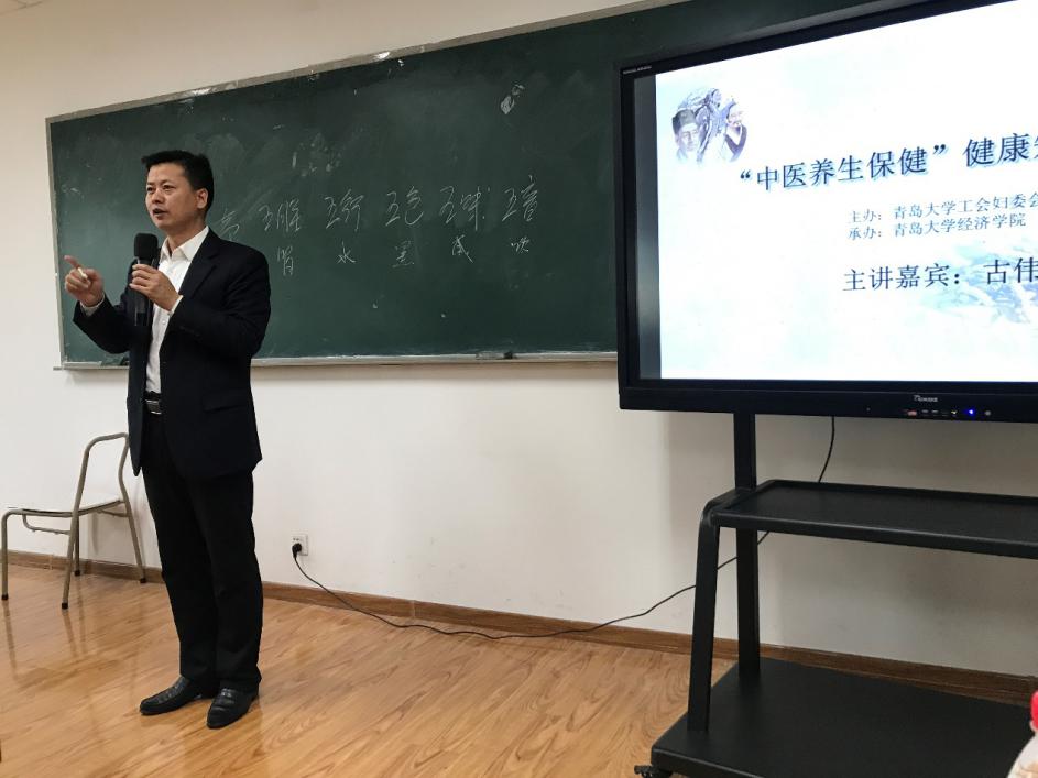 为提高教职工的保健养生意识,关爱大家的健康水平,11月19日下午,由太阳成集团tyc234cc工会妇委会主办、太阳成集团tyc234cc承办,太阳成集团tyc234cc“中医养生保健”健康知识讲座于金家岭三号实验楼411会议室成功举办。本次讲座特邀青岛古易堂中医专家古伟担任主讲嘉宾,太阳成集团tyc234cc工会小组长许清清主持,太阳成集团tyc234cc工会副主席万萍莉和学校教职工代表共同聆听讲座。