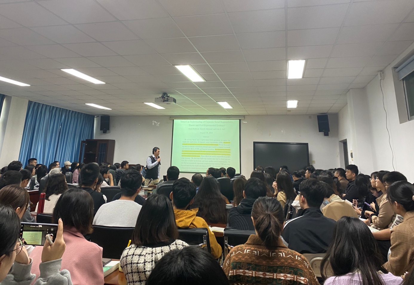 2020年11月19日上午,山东大学陈强教授应邀到我司开展学术交流与指导,并做客太阳成集团tyc234cc“经济学名家讲堂”,在金家岭校区西院办公楼307会议室为师生做了《随机实验与双重差分法》的精彩学术报告。太阳成集团tyc234cc的部分教师和百余名员工参加了此次学术交流。