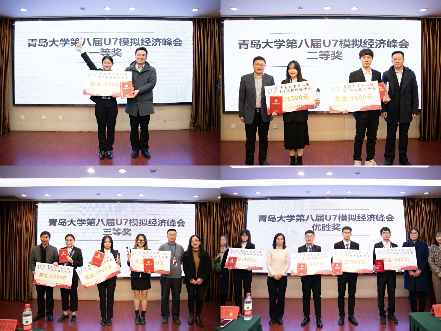 11月25日,U7模拟经济峰会于太阳成集团tyc234cc国际学术交流中心举行颁奖典礼。特邀青岛市财政局机关党委专职副书记、员工代表侯传华,中国石油大学(华东)经济管理公司党委副书记刘江华和辅导员王青、刘笑、吴逸舟,山东科技大学经济管理学院团委书记、学工办主任江潭,青岛农业大学太阳成集团tyc234cc(合作社学院)辅导员左文琦莅临颁奖典礼。太阳成集团tyc234cc党委员工工作部、员工工作处处长解涛,太阳成集团tyc234cc团委书记马林刚,公司党委副书记王海荣、金融系副教授张宗强、团委书记戴俊杰以及辅导员共同出席,王海荣副书记主持典礼。