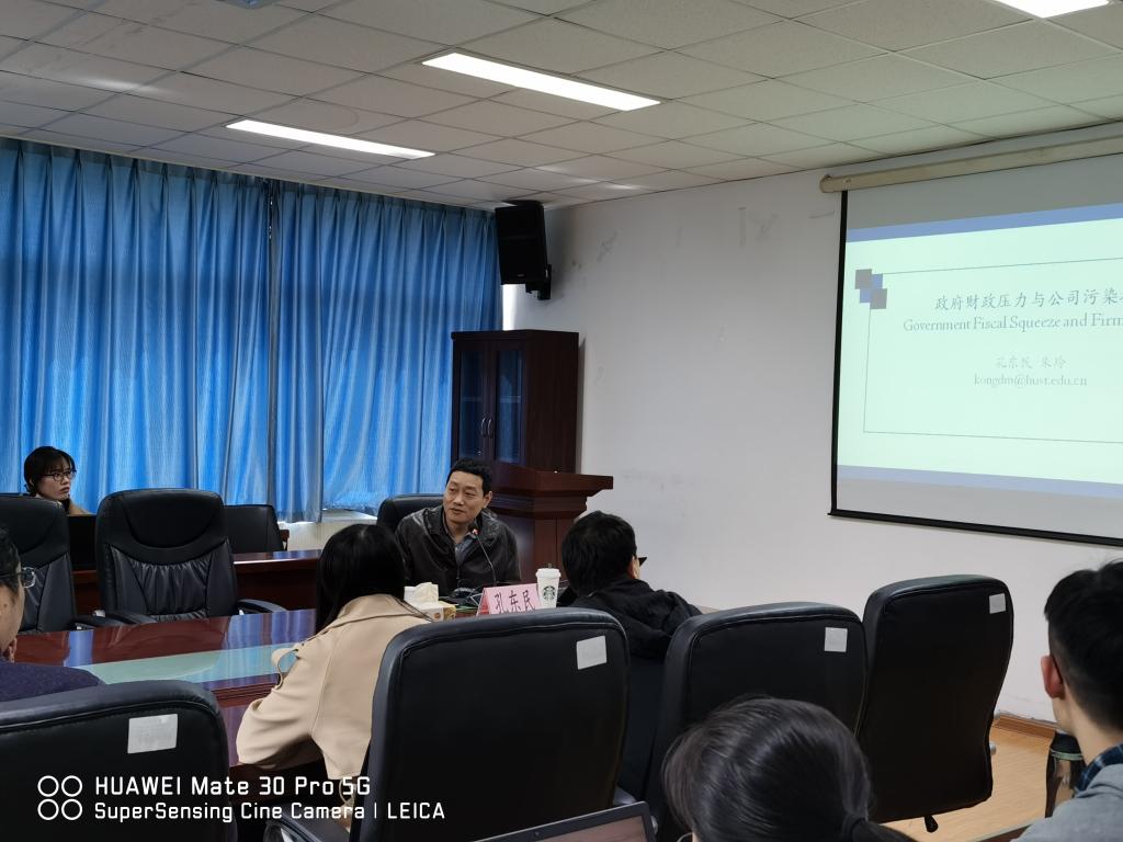 2021年4月16日上午,华中科技大学孔东民教授应邀到我司开展学术交流,并做客太阳成集团tyc234cc“经济学名家讲堂”,为师生做了《政府财政压力与公司污染排放》的精彩学术报告。太阳成集团tyc234cc刘喜华经理、逯进副经理、部分教师和研究生积极参与了此次交流活动,讲座由逯进副经理主持。