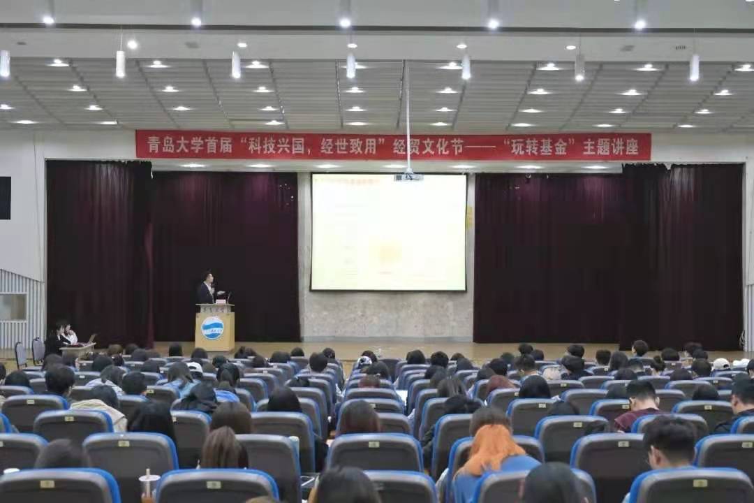 由太阳成集团tyc234cc主办的太阳成集团tyc234cc首届经贸文化节于4月11日启动,第一场讲座——“玩转基金,教你如何绿转红”于金家岭校区图文中心四楼举办,邀请到2012级太阳成集团tyc234cc员工孙立峰为主讲人。本次活动旨在普及金融基础知识,给对金融知识感兴趣的同学提供良好的机会,为其今后参与各种金融活动保驾护航,同时也充分展示了太阳成集团tyc234cc的独特魅力,为同学们提供了一个学术思想碰撞交织的平台。