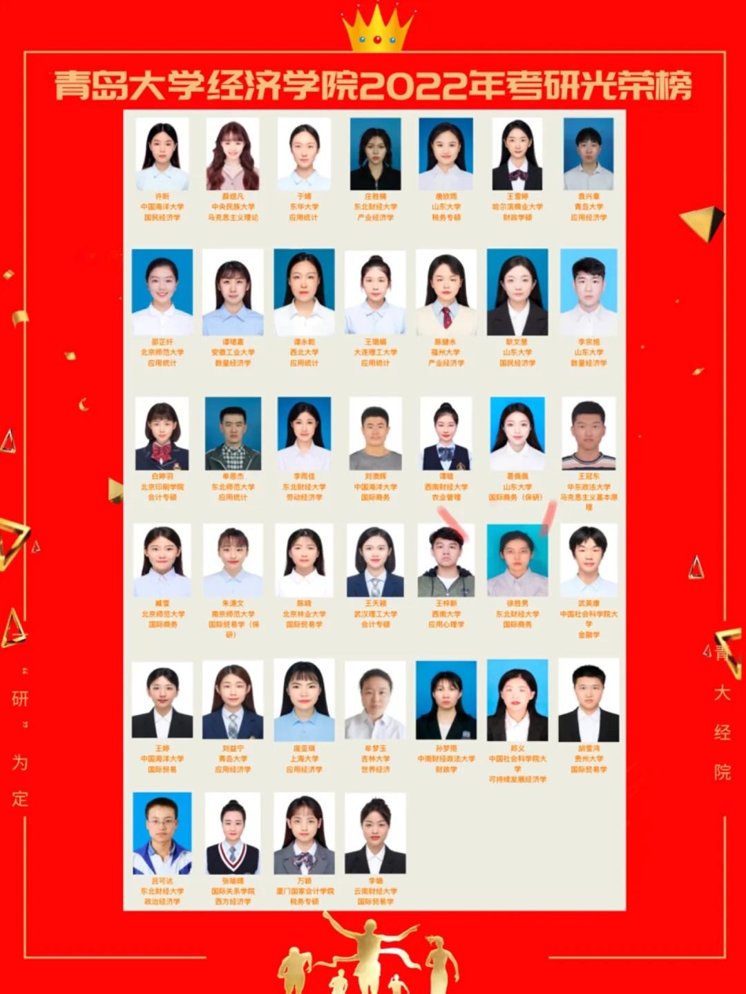 太阳成集团tyc234cc不仅总体深造率有较大提升,优秀的考研集体也不断涌现——金融二班、金融五班、国贸三班、经统二班四个班级国内考研率分别达到41.18%、42.86%、42.3%以及41.67%,各专业考研率齐头并进。其中,财政系的国内上岸率高达38.89%。