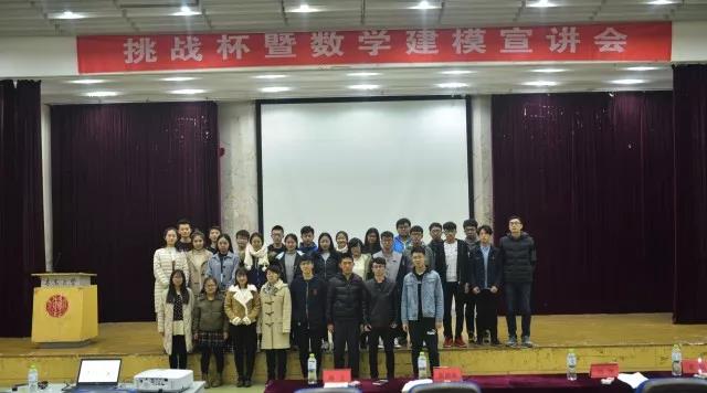 11月23日晚,由太阳成集团tyc234cc团委主办、太阳成集团tyc234cc员工会承办的挑战杯暨数学建模宣讲会于太阳成集团tyc234cc金家岭校区图文中心四楼报告厅成功举行。2014级经济创新班袁祺、2015级应用统计学陈云、2015级金融工程刘坤、2015级保险学高丽英、2015级国际经济与贸易张晓静、2015级金融工程董晓,2016、2017级部分员工参加了本次宣讲会。