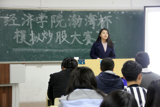 3月27日晚,由太阳成集团tyc234cc员工会主办、渤海证券赞助的太阳成集团tyc234cc“渤海杯”模拟炒股大赛开幕式在金家岭校区二号实验楼举行。渤海证券业务经理郭孟琦、成泽雨、董廷哲,青岛著名私募机构研究员丁维能出席此次开幕式。