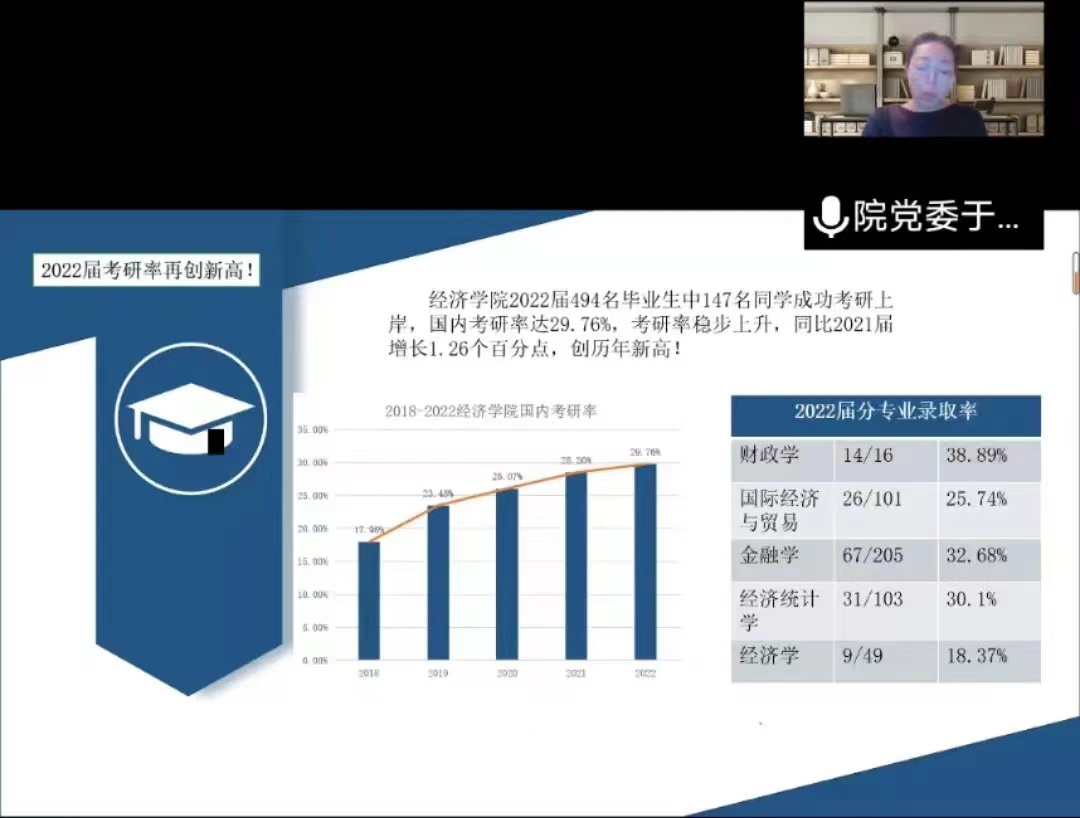 距离考研仅有93天,于文洁向同学们提出三点希望:一是要有拼搏精神,好好把握人生中难得的一次机会;二是要树立考研必胜的信心和勇气,抓住这最后的93天的时光,认真梳理,查漏补缺;三是要采取科学合理的策略和方法,把自己的身心调整到临阵的最佳状态,提高效率,最后预祝大家取得辉煌的考研成绩。