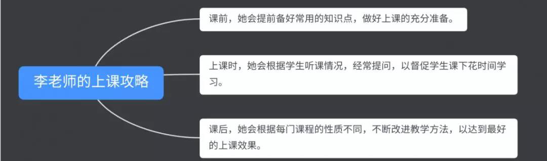 “李老师特别温和,上课讲得很好,特别详细,很有责任心,经常分析以前的同学的例子,讲给我们听,激励我们。”