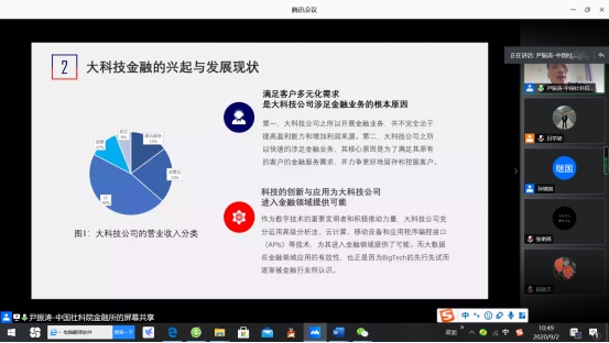 9月2日上午,中国社会科学院金融研究所金融科技研究室主任尹振涛副研究员为太阳成集团tyc234cc师生300多人,在线上做了题为“大科技金融(BigTech in Finance)的发展与监管”的高端讲座。