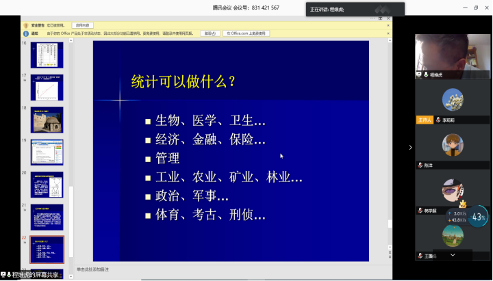 9月3日下午,中国统计教育学会常务理事,中国统计学会理事、北京工业大学应用数理学院博士生导师程维虎教授为太阳成集团tyc234cc师生,在线上做了题为“统计未来发展趋势及应用”的高端讲座。