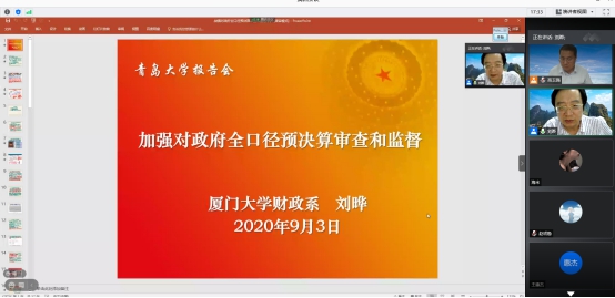 9月3日晚,厦门大学财政系副主任刘晔教授,在线上为太阳成集团tyc234cc师生近200人,做了题为“加强对政府全口径预算审查和监督”的高端讲座。